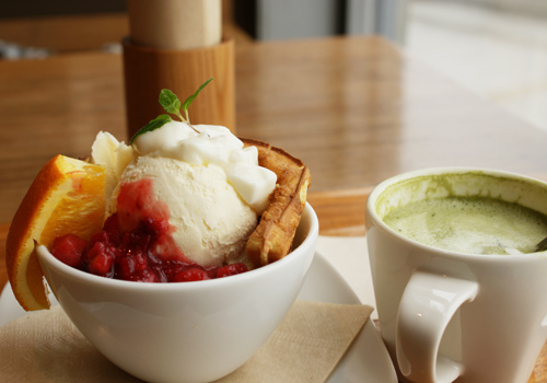 アイスクリームをのせて食べる。温かい物に冷たいものが載っているのがなんとも。