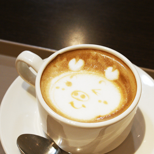 写真は好きなカフェのカプチーノ。ブタさん愛くるしいよ!!!